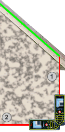 Altro dettaglio da non sottovalutare (almeno nel caso si necessiti di misurazioni precise) è la posizione che il misuratore laser dovrà mantenere per acquisire misure corrette. Per semplicità in tutte queste schede il DISTO viene raffigurato con un'immagine frontale, in realtà (ci riferiamo in particolare per le misurazioni inclinate) avremmo dovuto riportarlo con un'immagine laterale, perché è così che dovrà essere posizionato durante le misurazioni, per mantenere invariata la base di misura.
