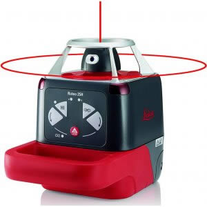 La dotazione più completa Art. 765752 : - Laser rotante Leica Roteo 25H - Ricevitore R250 con staffa - Batteria da 9 V per il ricevitore - Portabatterie per batterie alcaline - Batterie ricaricabili - Piastra segnale rossa - Caricatore internazionale