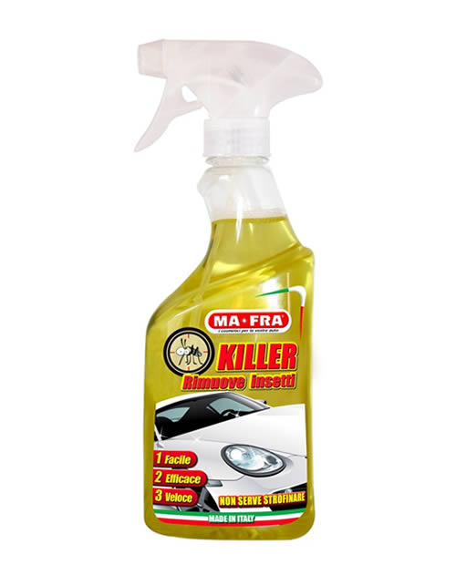 Killer di Ma-Fra è il risultato di una ricerca avanzata nei laboratori Ma-fra, progettato per rimuovere rapidamente insetti, resina e macchie di escrementi di volatili. Formula in gel che agisce rapidamente: scioglie in pochi secondi anche i residui più secchi, senza lasciare tracce. Killer è sicuro su tutte le superfici esterne, incluse carrozzeria, vetri, fanali e plastiche. È ideale anche per superfici metalliche, vetri e specchietti retrovisori. È versatile e adatto a auto moderne e d’epoca, moto, scooter, camper e veicoli ricreativi.