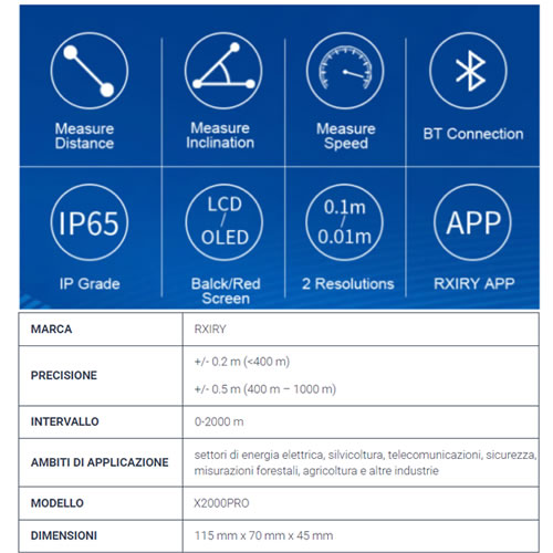Telemetro RXIRY X2000 PRO con portata di 2000 m