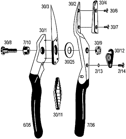 30/1 Manico (senza lama) - 30/11 Molla nichelata - 30/12 Chiusura